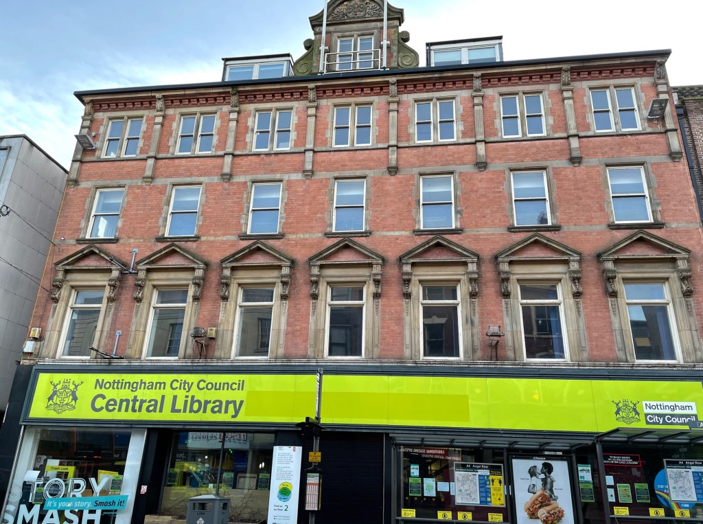 Re-entering Market Square, if you turn immediately left, one of Nottingham’s oldest pubs the Bell Inn reputedly had a gentlemen-only bar (though never proven to have gay connections) and further up Chapel Bar, The Dragon took the mantle of popularity following the demise of the Hearty Goodfellow. Apparently one night, it was invaded by an abusive bunch of skinheads. The landlord disappeared upstairs to return with a large Alsatian that rapidly dispersed the aggressive cowards! Opposite in Angel Row Library, an LGBT exhibition was displayed in the front window in 1987 receiving frequent vandalization. The library has since hosted a number of queer exhibitions.