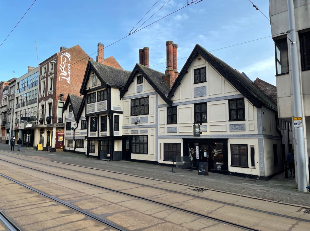 Follow Broadway around a corner and turn left onto St Mary’s Gate. On the left is a smart entrance to luxury apartments that still bear the name of its former infamous club, The Garage. It was also known as Lizard Lounge, and hosted to one of the many monthly gay nights in the late 90s.