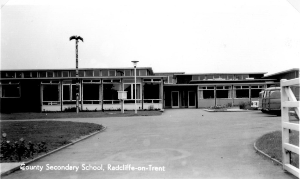She went to the secondary modern in 1969, when Mr Ford was the headteacher. It was a wooden building and the clasp buildings hadn’t been built. She remembers holes being dug and then concrete buildings just appearing (which were the new comprehensive school). The library was up a set of steps opposite the gym (which later became the main school office). The canteen was next to the front door (in what then became the library) and there was a serving hatch where dinners were served. Teachers she remembered were Mrs Allington, Mr Froggatt, Mr Jones and Miss Claridge (was a French teacher). She did her 11+ and could have gone to West Bridgford Grammar but she didn’t want to because she had made friends in Radcliffe. Mr Ford assured her dad, Major Alfred William Griffen, that the qualifications coming in with the school becoming a comprehensive wouldn’t hold her back and she would get the equivalent qualifications she would have got at the grammar school.